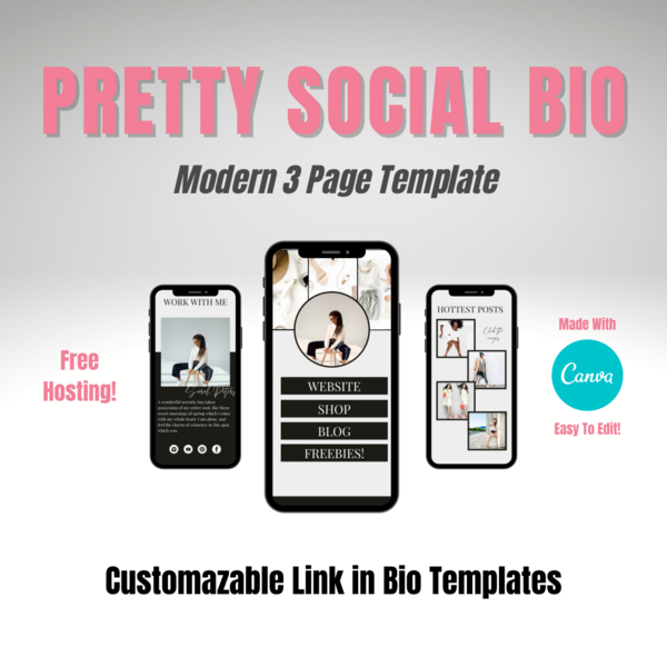 Pretty Social Bio | Link in Bio Canva Template | Modern 3 Page